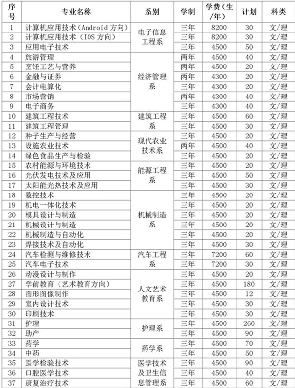 武威職業(yè)學(xué)院2019年招生專業(yè)