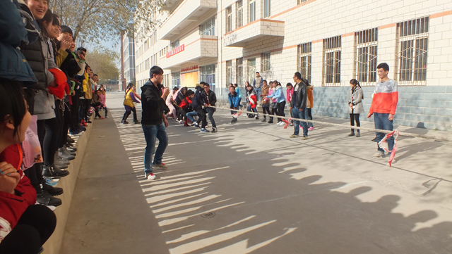 隨著蔡柱山宣布運(yùn)動會正式開始的指令發(fā)出,拔河決賽立刻在熱烈的氣氛中拉開了架勢,進(jìn)入決賽的班級在裁判的指導(dǎo)下迅速進(jìn)入指定位置,各班同學(xué)紛紛加油助威,運(yùn)動場上氣氛頓時被調(diào)動起來了。根據(jù)賽程安排,籃球賽、“15人跳繩”、乒乓球賽等集體和單人的各項比賽依次有序進(jìn)行,特別是跳繩比賽,參與面廣,同學(xué)們都積極投入其中,感受到運(yùn)動的樂趣和團(tuán)結(jié)的力量。