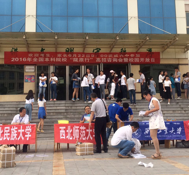 同一天,招生就業(yè)處還選派老師參加了在武威六中舉行的由《未來導(dǎo)報》主辦的“2016年全國本科院?!]原行’高招咨詢會”,就考生和家長關(guān)心的相關(guān)熱點(diǎn)問題進(jìn)行了現(xiàn)場答疑解惑,考生及家長表示對他們掌握各院校熱門專業(yè)和報考要求有很大幫助。