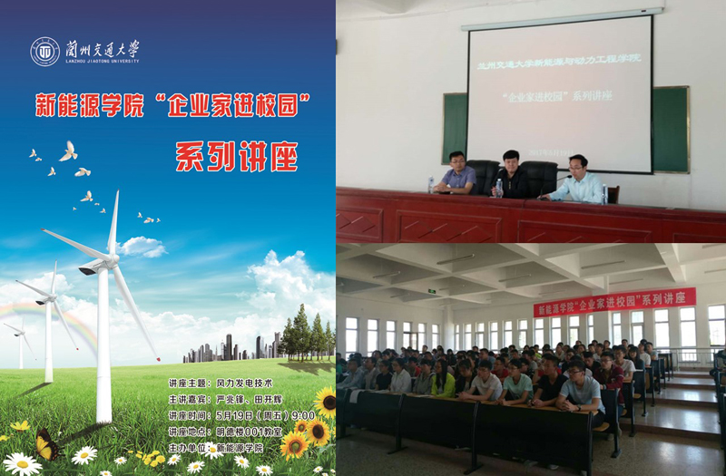 為促進新能源專業(yè)學生就業(yè),加強與新能源企業(yè)的交流合作。5月19日上午,新能源學院邀請武威航天萬源電機制造有限公司辦公室主任兼黨支部書記嚴兆鋒、技術部經(jīng)理田開輝兩位企業(yè)家在明德樓為新能源科學與工程全體學生做了以“風力發(fā)電技術”為主題的講座。本次講座由新能源學院辦公室副主任任陶主持。