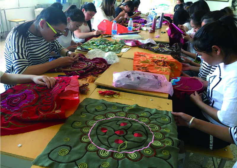 恰逢“一帶一路”偉大戰(zhàn)略構(gòu)想開(kāi)展之際,近日,為迎接“第二屆敦煌絲綢之路國(guó)際文化博覽會(huì)”的勝利召開(kāi),人文藝術(shù)教育系組織學(xué)前教育專(zhuān)業(yè)師生積極研發(fā)創(chuàng)意旅游作品,參加由省婦聯(lián)、省教育廳、省高校工委組織的“第一屆女大學(xué)生巧手創(chuàng)意大賽”。學(xué)院人文藝術(shù)教育系利用武威地處絲綢之路經(jīng)濟(jì)帶“咽喉”的區(qū)位優(yōu)勢(shì),挖掘古絲綢之路文化,激發(fā)學(xué)生創(chuàng)新創(chuàng)業(yè)能力,以精美的敦煌壁畫(huà)藻井圖案為造型元素,用刺繡的手法設(shè)計(jì)制作裝飾、實(shí)用效果極佳的抱枕等紡織作品,作品傳承了古絲綢之路文化,承載著廣大師生對(duì)敦煌藝術(shù)的向往和追求。參賽作品展現(xiàn)了人文藝術(shù)教育系學(xué)生的精美刺繡工藝和獨(dú)特的創(chuàng)意手法,體現(xiàn)了人文藝術(shù)教育系特色教學(xué)成果。據(jù)悉,參賽優(yōu)秀作品將在“第二屆敦煌絲綢之路國(guó)際文化博覽會(huì)”上展出。