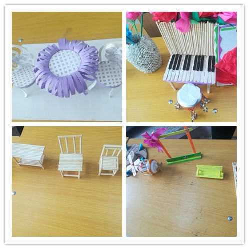 活動(dòng)中,指導(dǎo)老師要求學(xué)生們充分利用身邊廢棄的飲料瓶、廢紙、塑料、布料、木料等廢舊材料,通過(guò)自己的創(chuàng)意,制作出體現(xiàn)科技、環(huán)保的工藝作品。活動(dòng)布置后,同學(xué)們積極參與,充分利用網(wǎng)絡(luò)搜集相關(guān)資料及設(shè)計(jì)圖案,憑借豐富的想象力和創(chuàng)造力,將生活中的廢品制作成了各種各樣的手工藝術(shù)品。