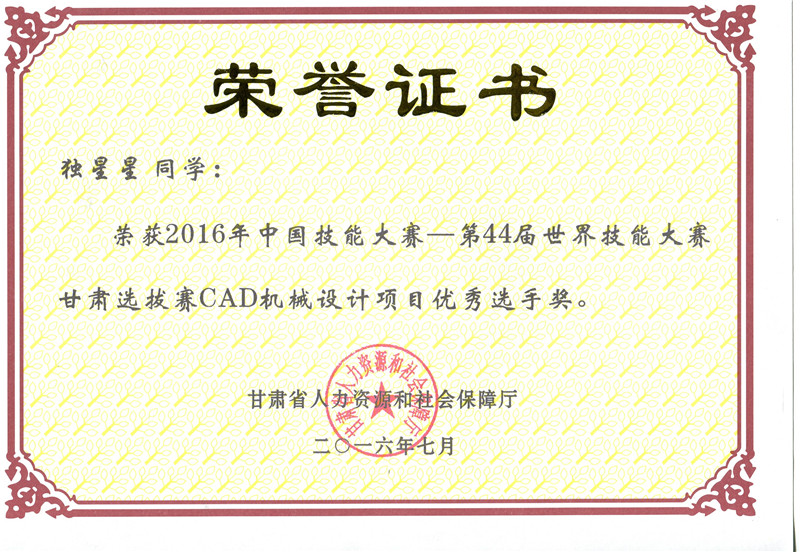 - 下一篇:2016年中國技能大賽甘肅選拔賽機(jī)電一體化技術(shù)項(xiàng)目優(yōu)秀獎[ 06-21 ]
