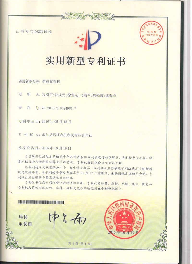 科研成果---實用新型專利:藥材收貨機