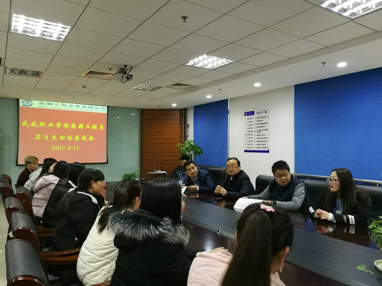 為全面掌握學(xué)生頂崗實(shí)習(xí)情況,解決學(xué)生實(shí)習(xí)就業(yè)中存在的問題,進(jìn)一步做好學(xué)生頂崗實(shí)習(xí)工作。2月14日至18日,我系黨總支書記黃文源帶隊(duì)前往福建泉州陽光中科能源股份有限公司和安徽蕪湖三安光電科技有限公司對(duì)我系2014級(jí)頂崗實(shí)習(xí)學(xué)生進(jìn)行了回訪。