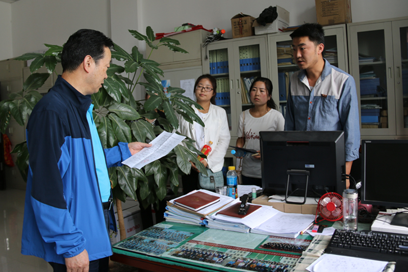 8月26日,院長(zhǎng)宗瑞謙帶領(lǐng)辦公室、教務(wù)處、學(xué)生工作處、招生就業(yè)處、后勤處、保衛(wèi)處、圖書(shū)館等部門負(fù)責(zé)人,深入全院各教學(xué)系、實(shí)驗(yàn)室、學(xué)生餐廳、公寓等處調(diào)研,全面檢查了學(xué)院開(kāi)學(xué)前準(zhǔn)備工作。