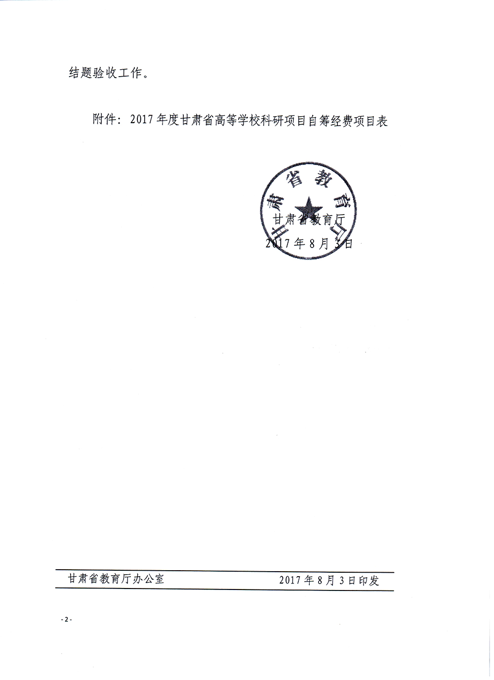轉(zhuǎn)發(fā)甘肅省教育廳《關(guān)于下達(dá)2017年度甘肅省高等學(xué)校科研項(xiàng)目自籌經(jīng)費(fèi)項(xiàng)目的通知》