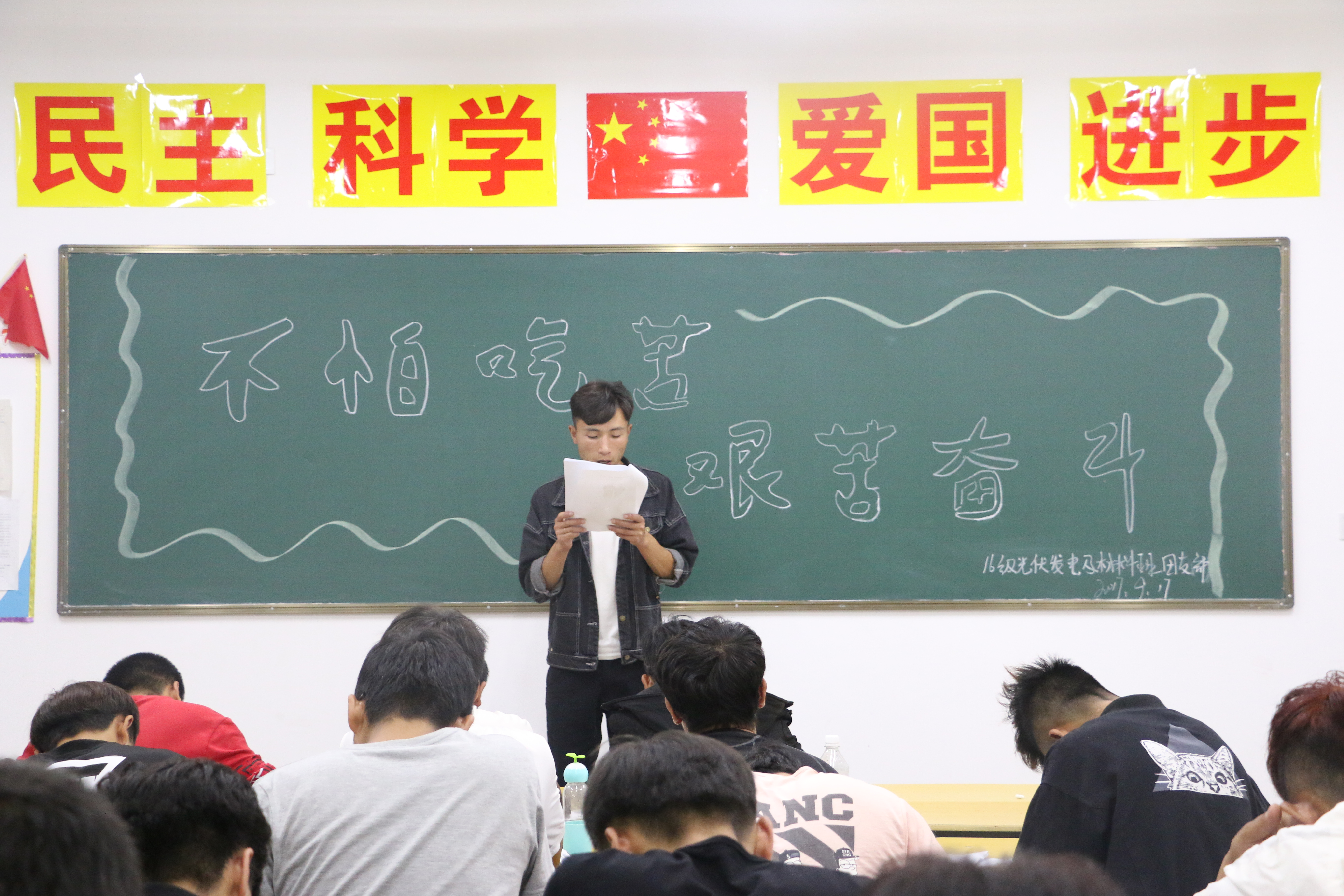 根據(jù)學(xué)院團(tuán)委工作安排,能源工程系各班于9月19日晚召開“不怕吃苦 艱苦奮斗”主題團(tuán)會,學(xué)習(xí)并研讀了《習(xí)近平的七年知青歲月》。