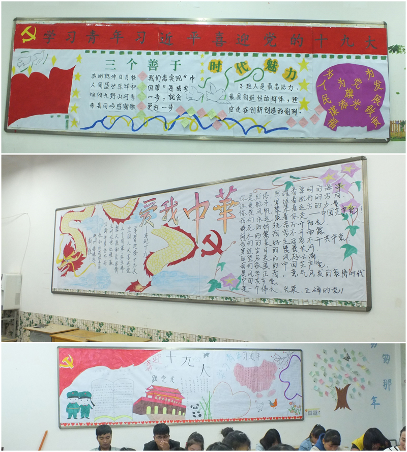 在黨的十九大即將召開之際,為進一步深化“中國夢”和“社會主義核心價值觀”主題教育,增進我系學生的愛國熱情和團結(jié)意識,營造良好的校園文化氛圍,引導(dǎo)學生準確把握中國夢的本質(zhì)屬性,將個人夢想融入中國夢中,自覺增強奮斗拼搏精神,積極踐行社會主義核心價值觀,10月10日,經(jīng)我系黨總支研究決定,由系團總支負責,各班團支部開展“學習青年習近平,喜迎黨的十九大”為主題的黑板報評比活動。