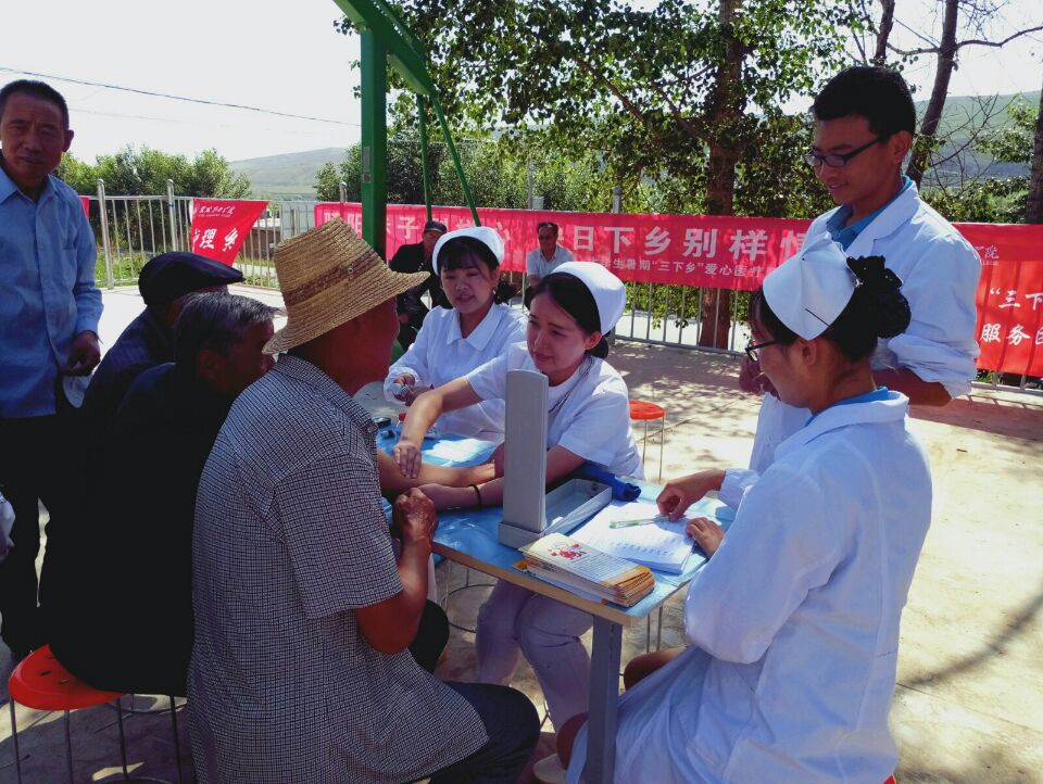 2017年暑假期間,護(hù)理系積極響應(yīng)院團(tuán)委暑期“三下鄉(xiāng)”社會(huì)實(shí)踐活動(dòng)的號(hào)召,組織11名學(xué)生成立了“愛(ài)心醫(yī)療服務(wù)團(tuán)”,赴武威市新井村、張義鎮(zhèn)、武威第十一中學(xué)、小洪溝河灣村、沙金臺(tái)村等多地開(kāi)展了為期6天的社會(huì)實(shí)踐活動(dòng)。