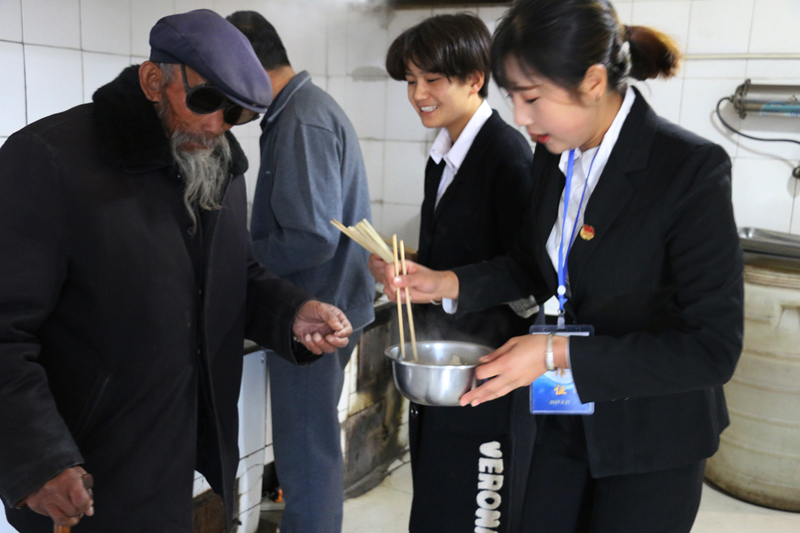 上午八點(diǎn)半,醫(yī)學(xué)技術(shù)與信息管理系各位黨員、入黨積極分子、團(tuán)學(xué)干部、師生代表在廚房為老人包餃子,并整理被褥;康復(fù)治療專業(yè)教師黨員高萬飛為老人講解“如何健康養(yǎng)生”;系團(tuán)總支為老人們送上毛巾、牙膏、香皂等日常生活用品;愛牙協(xié)會(huì)的志愿者為老人,進(jìn)行牙齒檢查,講解如何愛護(hù)牙齒;中醫(yī)養(yǎng)生協(xié)會(huì)的志愿者為老人們測(cè)血壓,演示常用的按摩方法。中午時(shí)分,老人們吃著熱氣騰騰的餃子,看著全系師生代表為老人們準(zhǔn)備的精彩節(jié)目,臉上洋溢著幸福的笑容。
