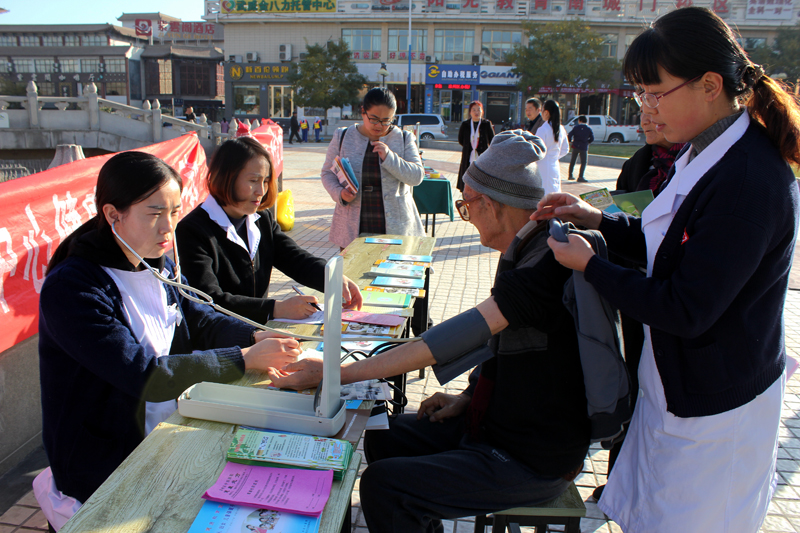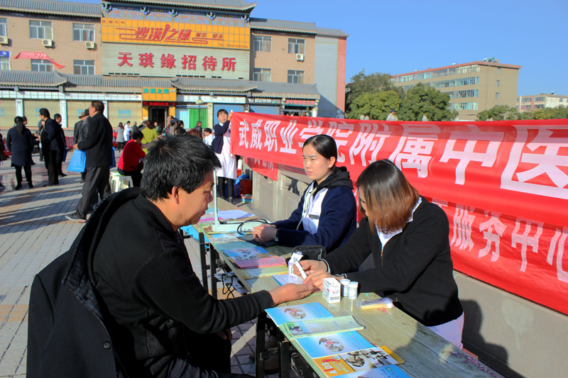11 月1,為配合2017年甘肅衛(wèi)生計生題材劇目秦腔《皇甫謐》在武威成功上演,根據(jù)市衛(wèi)生計生委安排,直屬附屬醫(yī)院派出醫(yī)生李生海、護(hù)士許海燕等醫(yī)務(wù)人員組成的醫(yī)療小分隊,與其他10余家醫(yī)療衛(wèi)生單位的醫(yī)務(wù)人員一道,在武威南城門廣場開展便民義診服務(wù)活動。