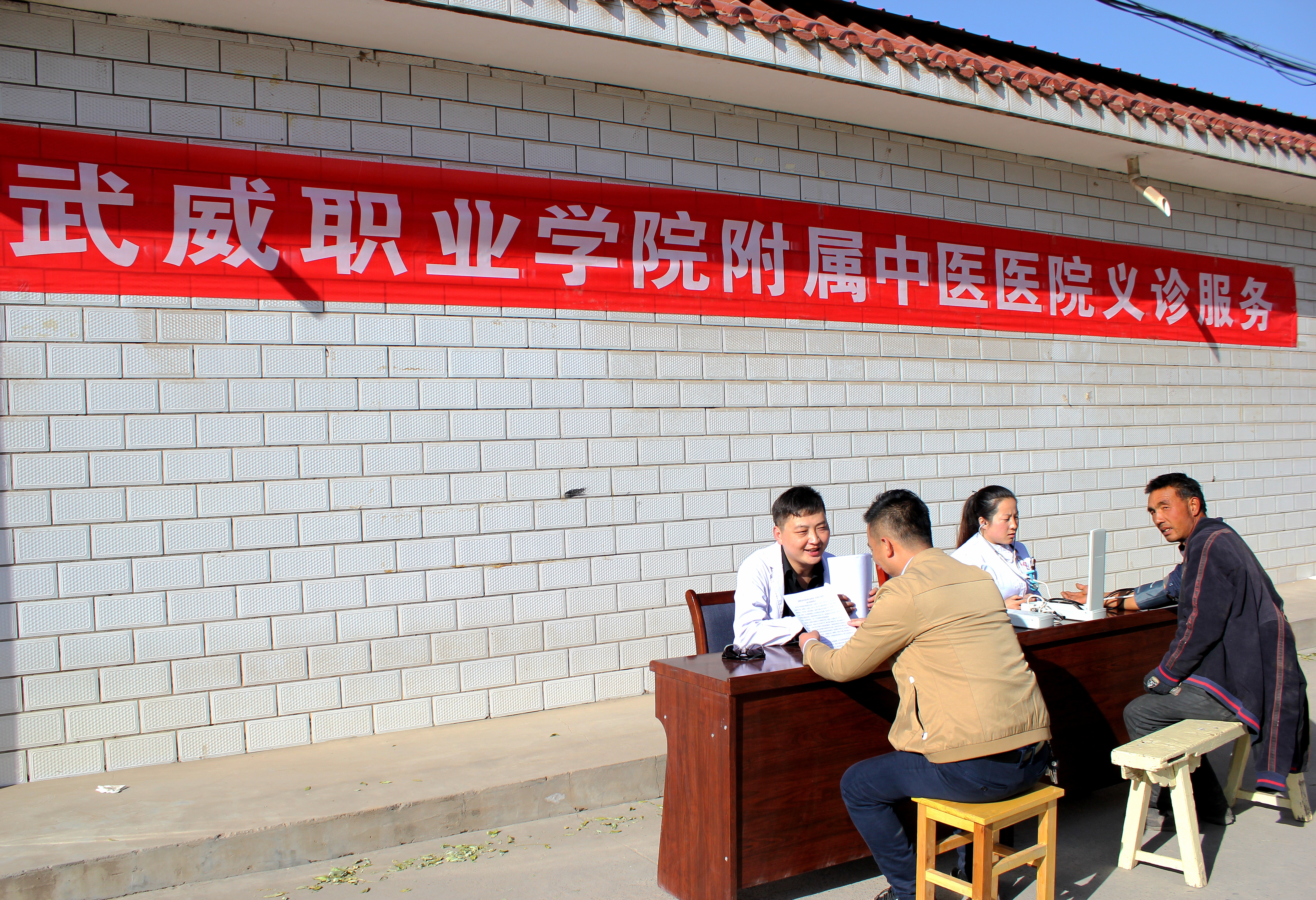 在古城鎮(zhèn)衛(wèi)生院的周密安排下,下午3時,義診服務(wù)隊在衛(wèi)生院對面的大街上,拉起橫幅,為過往群眾量血壓、開處方,開展醫(yī)療咨詢服務(wù)。