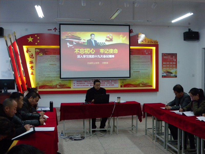 為深入學(xué)習(xí)黨的十九大會(huì)議精神,人文藝術(shù)教育系黨總支于2017年11月28日下午在勵(lì)勤樓209黨員活動(dòng)室開展了書記講黨課活動(dòng)。黨課由胡靜峰同志主講,題目為《不忘初心 牢記使命--深入學(xué)習(xí)黨的十九大會(huì)議精神》,全體黨員參加了此次活動(dòng)。