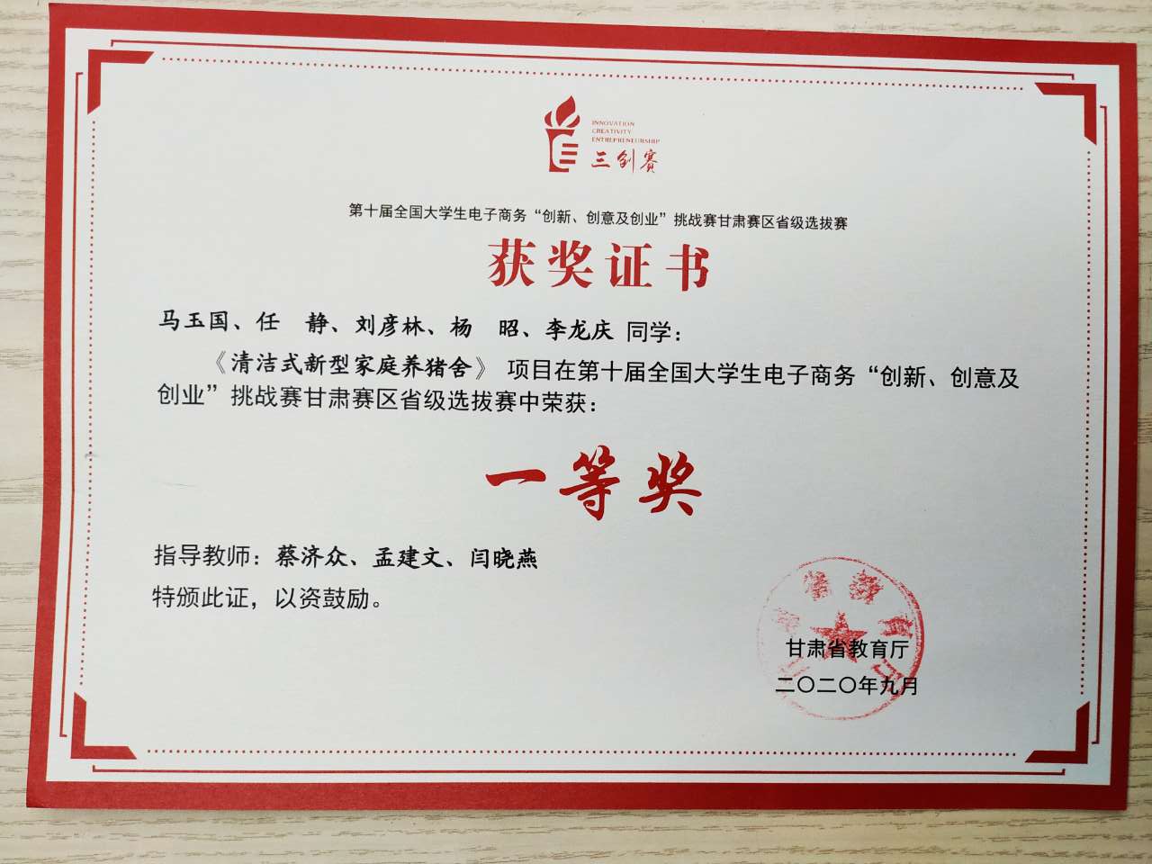 第十屆全國(guó)大學(xué)生電子商務(wù)“創(chuàng)新、創(chuàng)意及創(chuàng)業(yè)挑戰(zhàn)賽甘肅省賽區(qū)省級(jí)選拔賽《清潔式新型家庭養(yǎng)豬舍》