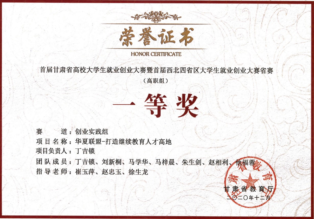 首屆甘肅省高校大學(xué)生就業(yè)創(chuàng)業(yè)大賽暨首屆西北四省區(qū)大學(xué)生就業(yè)創(chuàng)業(yè)大賽省賽(高職組)《華夏聯(lián)盟-打造繼續(xù)教育人才高低地》