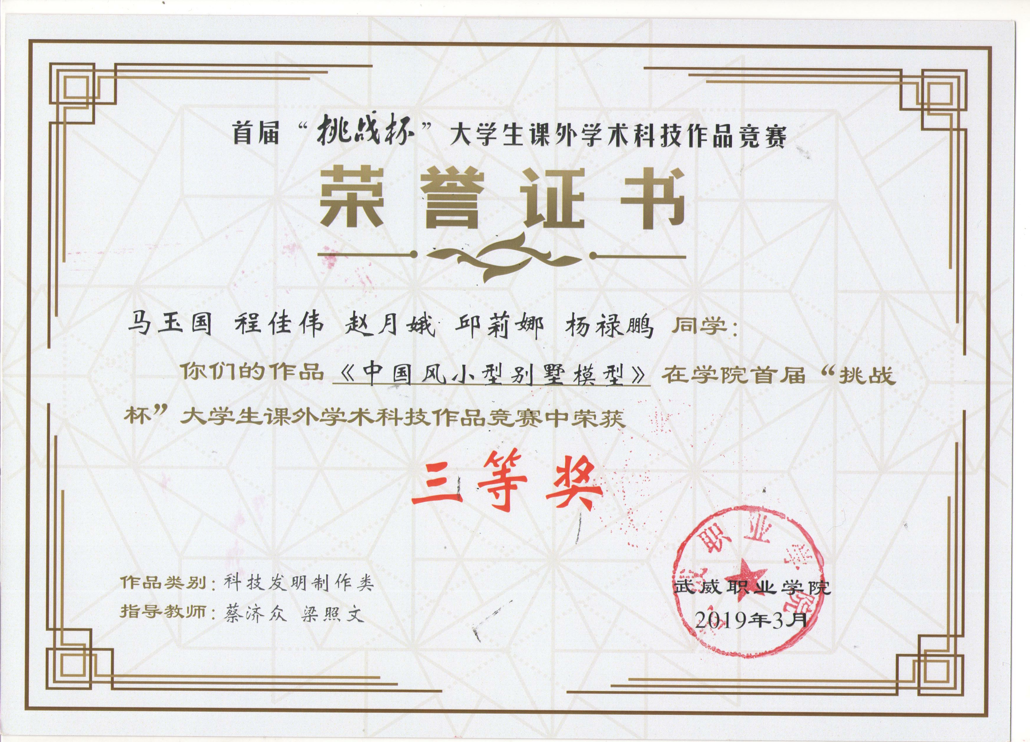 武威職業(yè)學(xué)院首屆“挑戰(zhàn)杯”大學(xué)生課外學(xué)術(shù)科技作品《中國(guó)風(fēng)小型別墅模型》