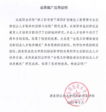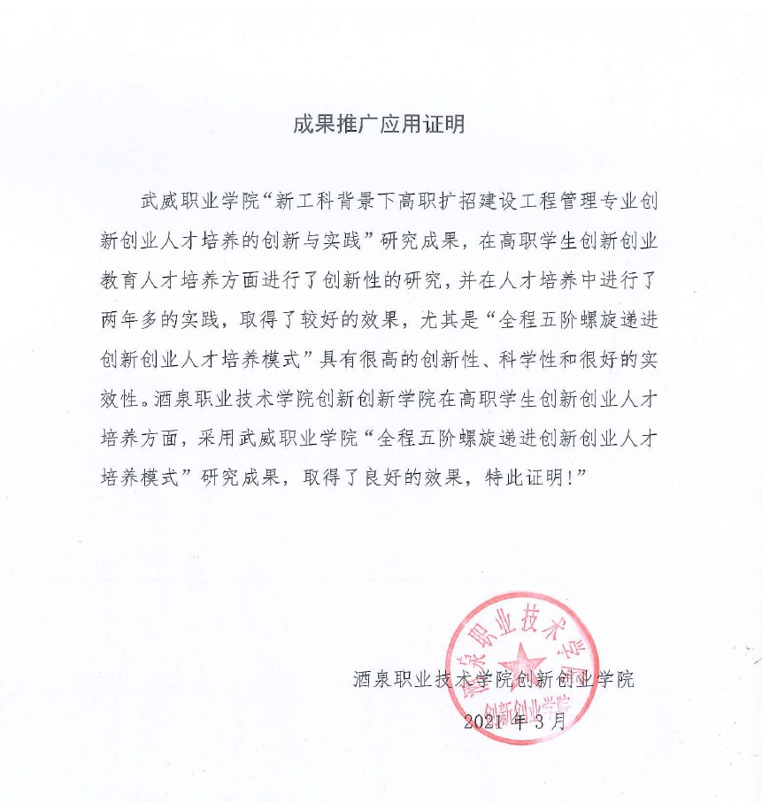 成果推廣應(yīng)用證明(酒泉職業(yè)技術(shù)學(xué)院創(chuàng)新創(chuàng)業(yè)學(xué)院)
