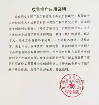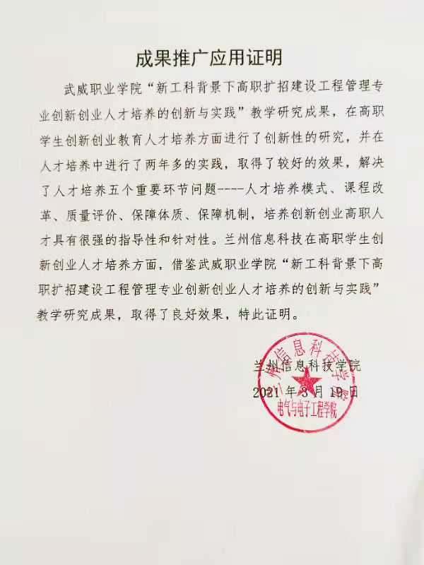 成果推廣應(yīng)用證明(蘭州信息科技學(xué)院)