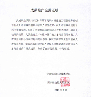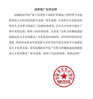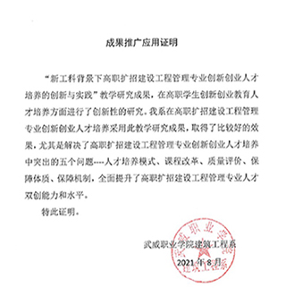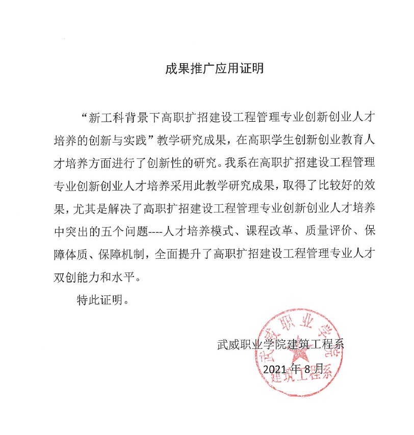 成果推廣應(yīng)用證明(武威職業(yè)學(xué)院建筑工程系)