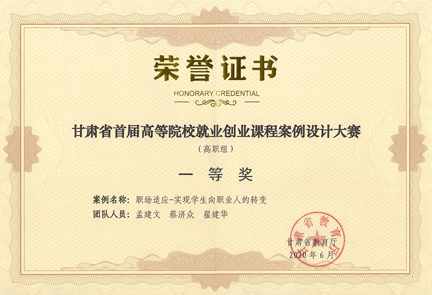 榮獲甘肅省首屆高等院校就業(yè)創(chuàng)業(yè)課程案例設(shè)計(jì)大賽(高職組)一等獎(jiǎng)