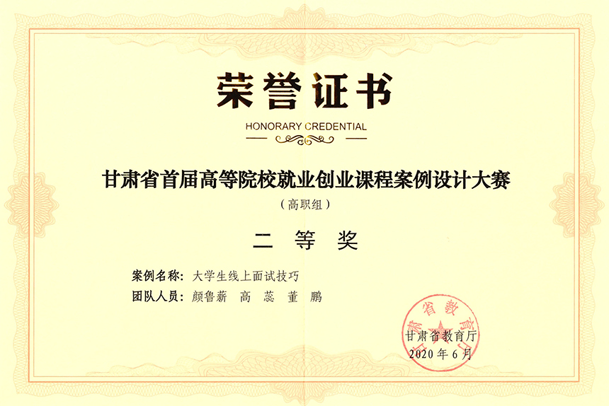 《大學(xué)生線上面試技巧》榮獲甘肅省首屆高等院校就業(yè)創(chuàng)業(yè)課程案例設(shè)計大賽(高職組)二等獎
