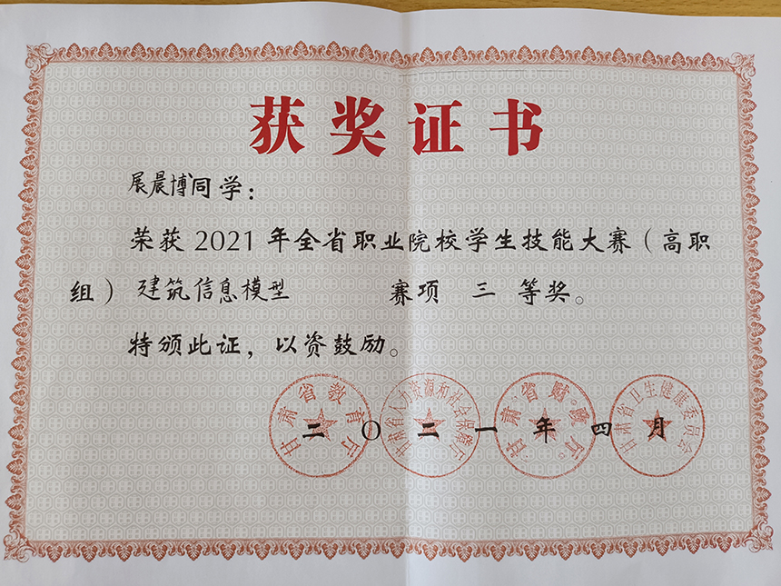 2021年全省職業(yè)院校學(xué)生技能大賽(高職組)建筑信息模式賽項(xiàng)三等獎(jiǎng)