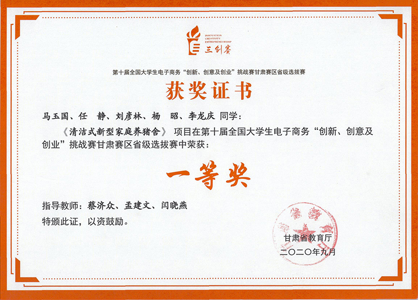 第十屆全國大學(xué)生電子商務(wù)“創(chuàng)新、創(chuàng)意及創(chuàng)業(yè)挑戰(zhàn)賽甘肅省賽區(qū)省級選拔賽《清潔式新型家庭養(yǎng)豬舍》